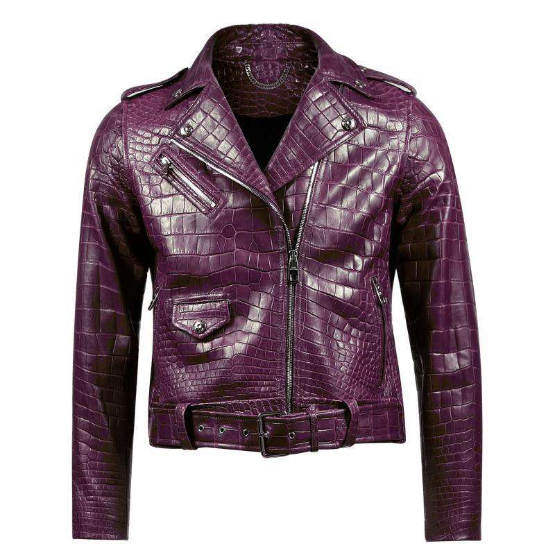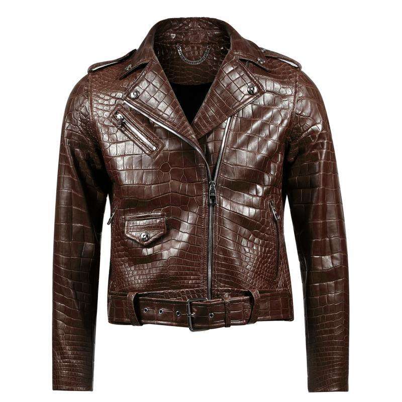 แจ็กเก็ตหนังจระเข้สำหรับผู้ชายเสื้อแจ็คเก็ตหนังจระเข้ลายนูนสไตล์คลาสสิกดีไซน์ใหม่