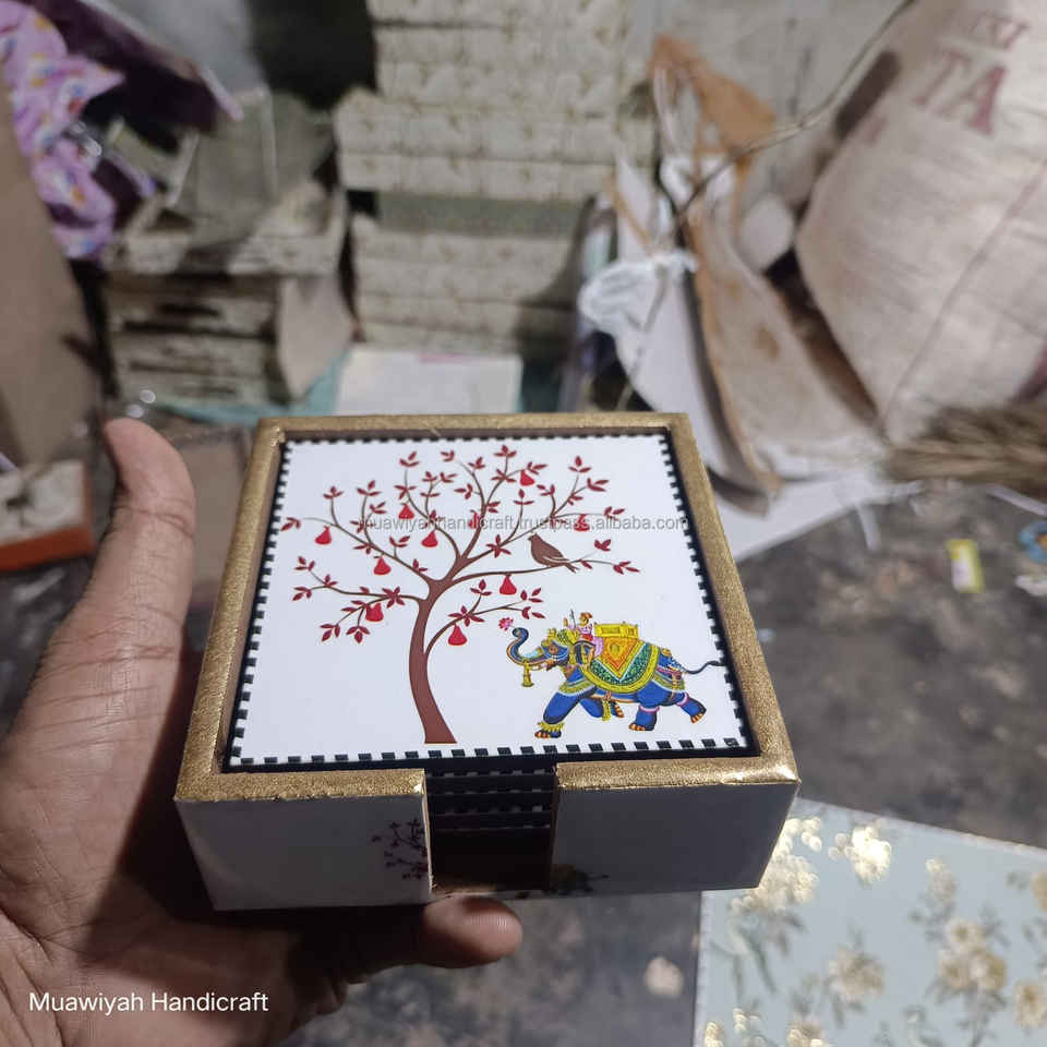 ที่รองแก้วไม้พิมพ์ลายดีไซน์ใหม่ชุดที่รองแก้วชากาแฟรูปทรงสี่เหลี่ยมทำจากไม้ออกแบบอย่างสวยงาม