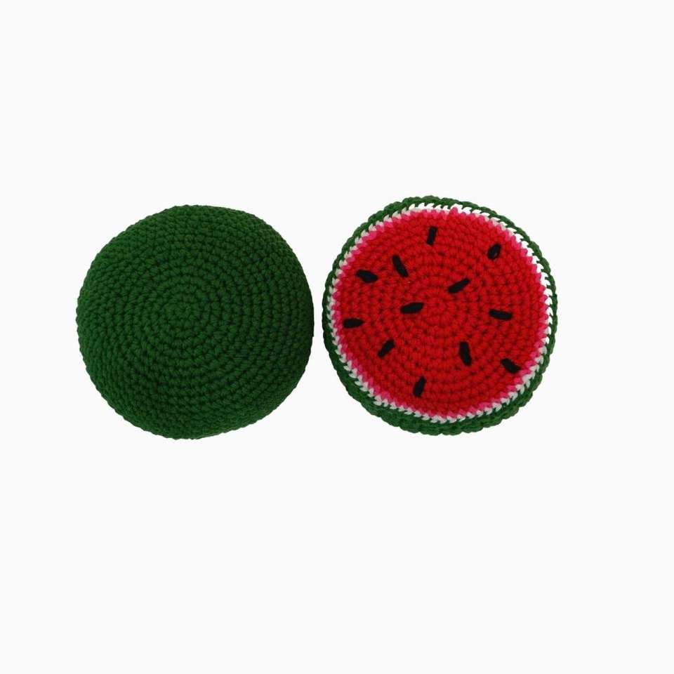 การออกแบบใหม่ผลิตภัณฑ์ผู้ผลิตอุปกรณ์สัตว์เลี้ยงขนาดใหญ่แตงโมรูปแฮนด์เมดถักแบบโต้ตอบสำหรับสุนัขแมวเล่นตลก