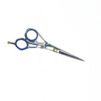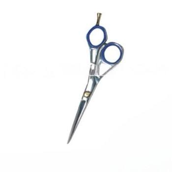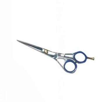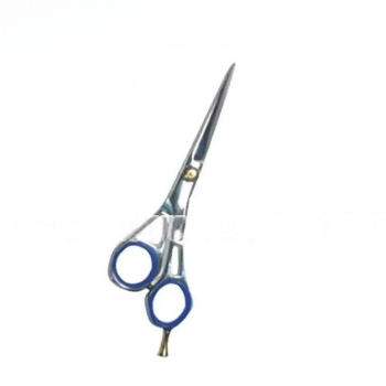 New Design Professional Steel Manual Barber Scissor with Razor Edge Silver and Blue Finger Rest Adjustable Screw (5.5")