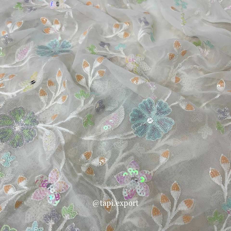 ออกแบบ:ผ้าปักเลื่อมลายดอกไม้