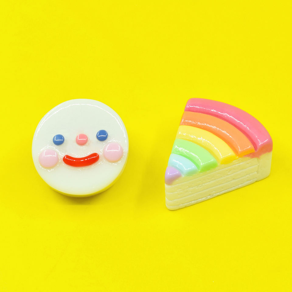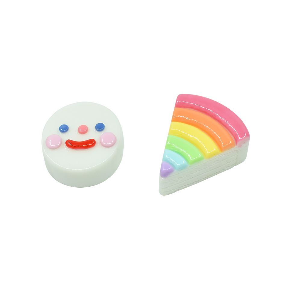 เค้กสายรุ้งดีไซน์ใหม่และเรซิ่นคาโบชองรูปหน้าตาน่ารักสำหรับเคสมือถือ งานฝีมือ DIY ของเล่นอาหาร พวงกุญแจ จี้ห้อย