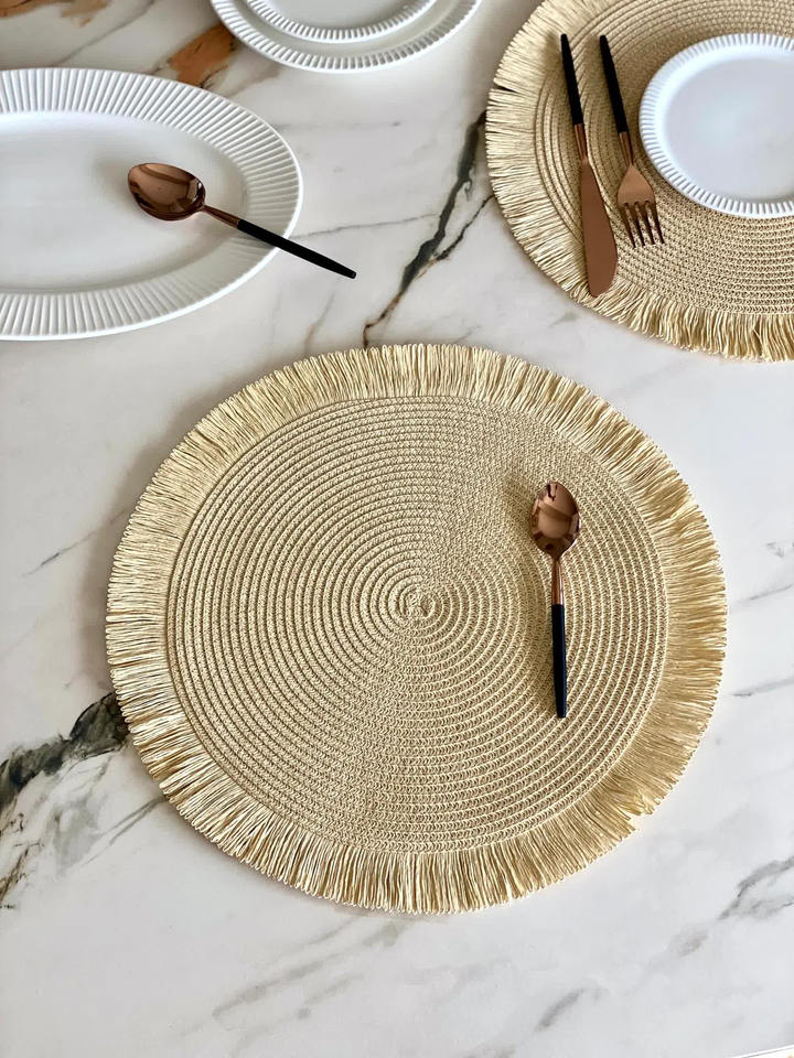 แผ่นรองจานหวายกันลื่นสำหรับโต๊ะอาหารแผ่นปูรองจานกันลื่นออกแบบตกแต่งโต๊ะดีไซน์ใหม่