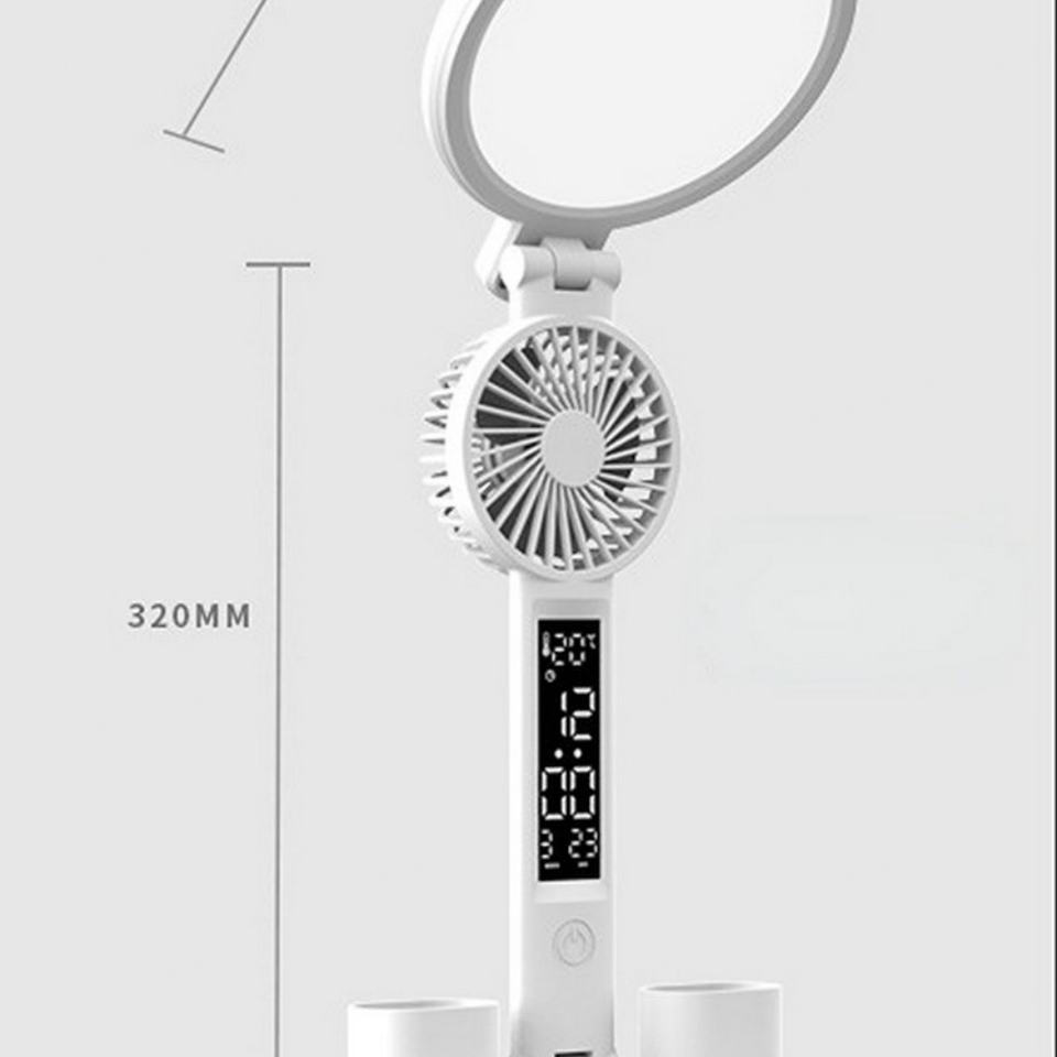 โคมไฟตั้งโต๊ะ LED พร้อมปฏิทินถาวร พัดลม และที่ใส่ปากกาคู่