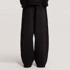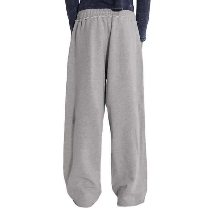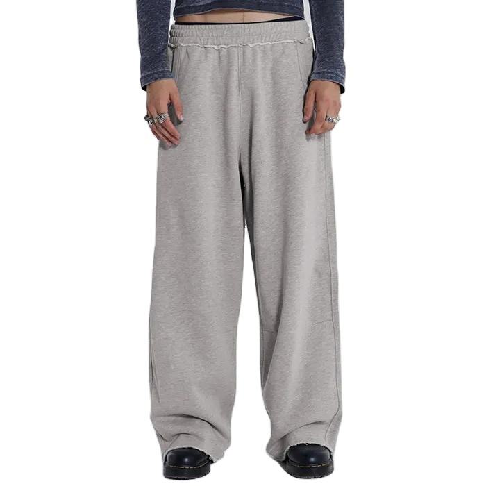 กางเกงวอร์มทรงหลวมขาบานดีไซน์ใหม่สำหรับผู้ชาย สีพื้น เนื้อผ้าหนา ทรงแบ็กกี้ ขอบดิบ