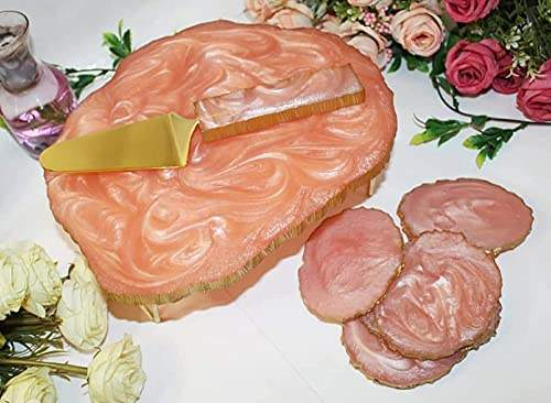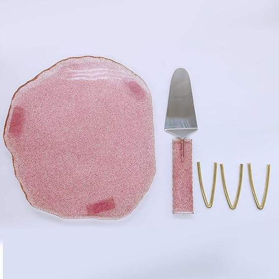 ขาตั้งเค้กเรซิ่นดีไซน์ใหม่ พร้อมที่ตักเค้ก ลายหินอาเกต ขนาดและสีตามสั่ง ขายดีจากอินเดีย