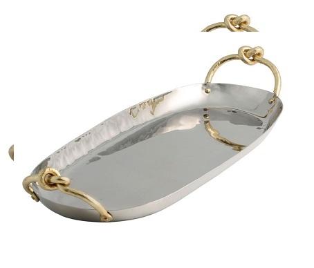 ถาดเสิร์ฟชุบเงินดีไซน์ใหม่สไตล์ราชวงศ์และวินเทจสแตนเลสพร้อมจานและจานมือจับทองเหลือง