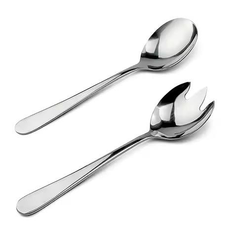 ชุดช้อนส้อมสลัดดีไซน์ใหม่ ช้อนสลัดสำหรับเสิร์ฟสลัด ชุดช้อนส้อมโลหะดีไซน์ใหม่ ช้อนและส้อมโลหะแบบแบน