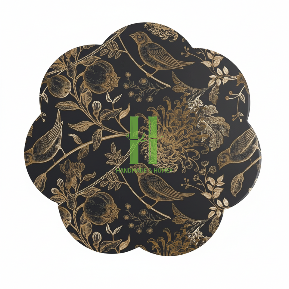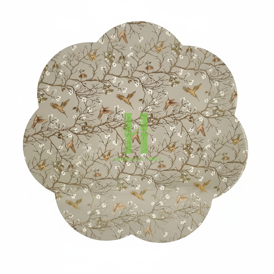 แผ่นรองจานลายหอยเชลล์พิมพ์แล็คเกอร์อาหารปลอดภัยสำหรับวางแล็คเกอร์ที่ทำด้วยมือจากเวียดนาม