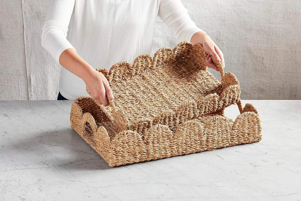 ถาดเสิร์ฟหญ้าทะเลทรงหอยพัดดีไซน์ใหม่สำหรับตกแต่งบ้านผลิตในเวียดนามขายดีที่สุดในราคาไม่แพง