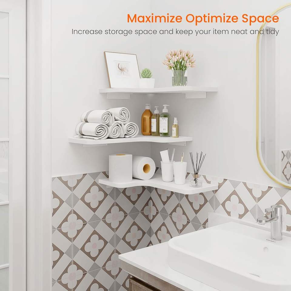 การออกแบบใหม่ชุดชั้นวางผนังมุมที่มีมุมลวดชั้นลอยไม้รูปตัว L แขวนชั้นวางของสําหรับตกแต่งผนัง