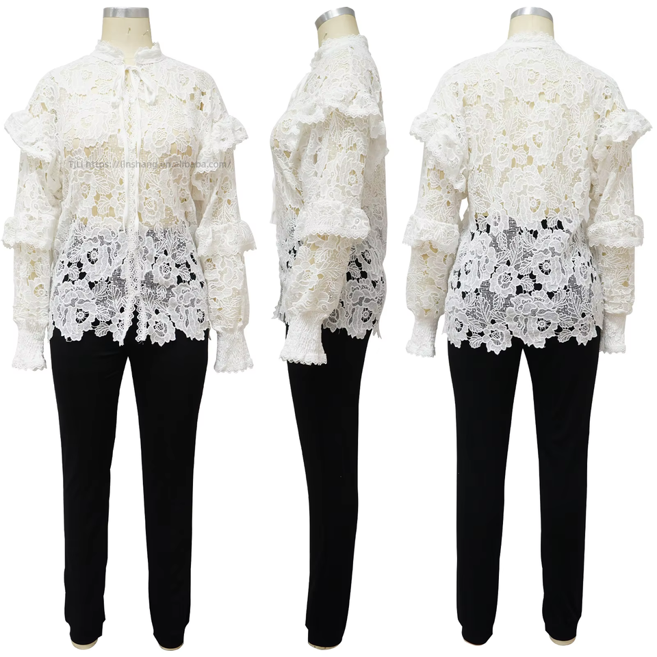 เสื้อลูกไม้ลายฉลุและเสื้อแฟชั่นสำหรับผู้หญิงดีไซน์ใหม่