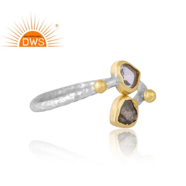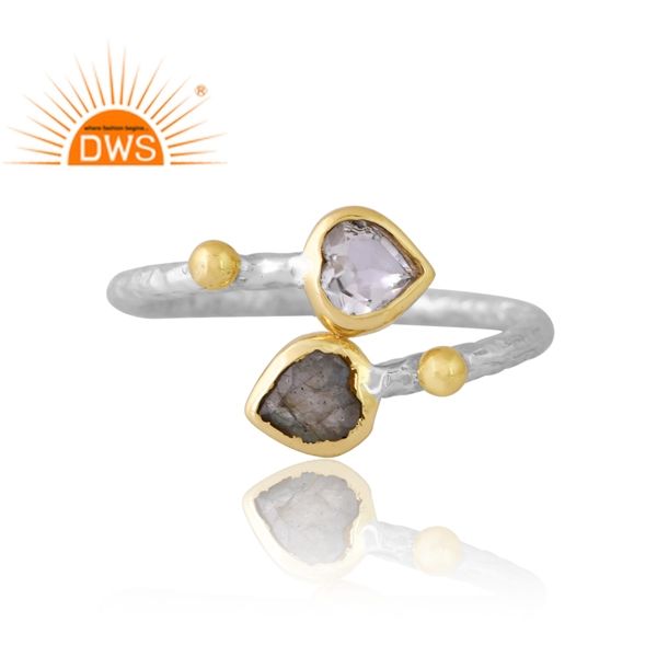 แหวนพลอยควอตซ์และลาบราดอไรต์คริสตัลสีเงินธรรมชาติดีไซน์ใหม่เครื่องประดับที่กำหนดเองสำหรับผู้หญิงของขวัญสำหรับผู้หญิงสำหรับเธอ