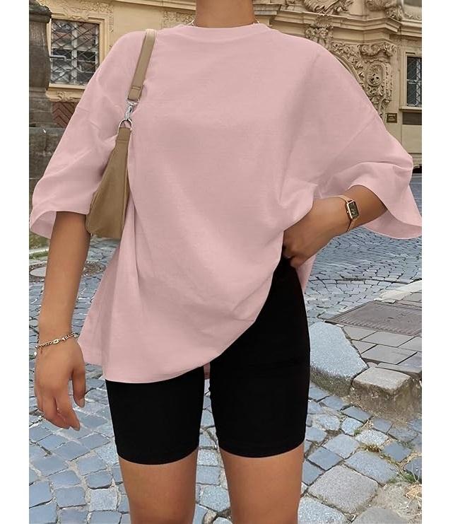 เสื้อยืดผู้หญิงดีไซน์ใหม่ ผ้าฝ้ายแท้ 100% แขนครึ่งตัว คอเฉียง ไหล่ตก ทรงโอเวอร์ไซส์ สวมใส่สบาย ระบายอากาศได้ดี ผลิตในบังกลาเทศ