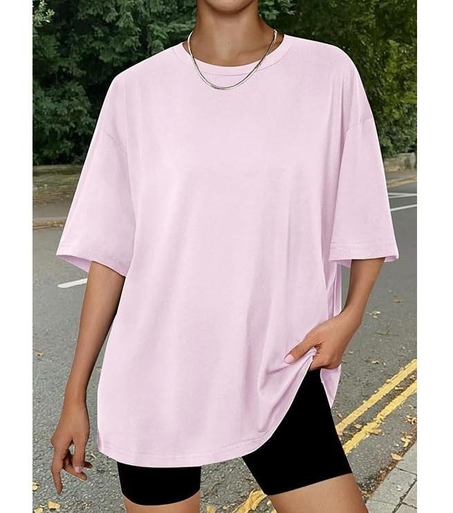 เสื้อยืดผู้หญิงดีไซน์ใหม่ ผ้าฝ้ายแท้ 100% แขนครึ่งตัว คอเฉียง ไหล่ตก ทรงโอเวอร์ไซส์ สวมใส่สบาย ระบายอากาศได้ดี ผลิตในบังกลาเทศ