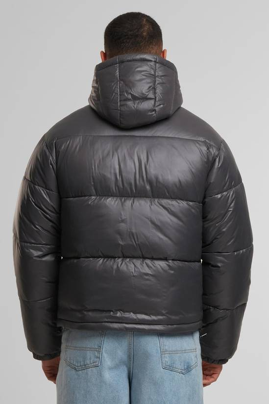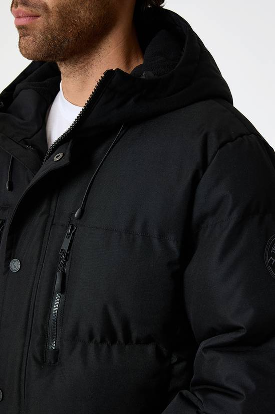 เสื้อแจ็คเก็ตพัฟเฟอร์ผู้ชายแบบมีฮู้ด ดีไซน์ใหม่ สีพื้น ผ้าแคนวาส ปักโลโก้ด้านหน้า กันน้ำ ระบายอากาศได้ดี เหมาะสำหรับใส่กลางแจ้งในฤดูหนาว สไตล์สตรีทแวร์