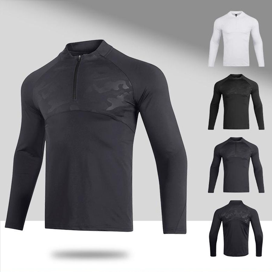 เสื้อยืดรัดกล้ามเนื้อแขนยาวถักแบบใหม่สำหรับผู้ชายเสื้อยืดผ้าสแปนเด็กซ์โพลีเอสเตอร์แบบยั่งยืนดีไซน์ใหม่