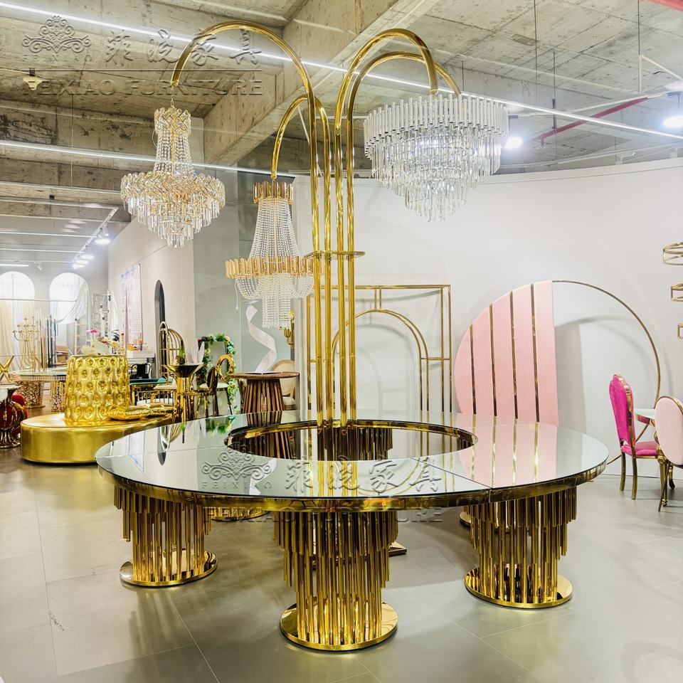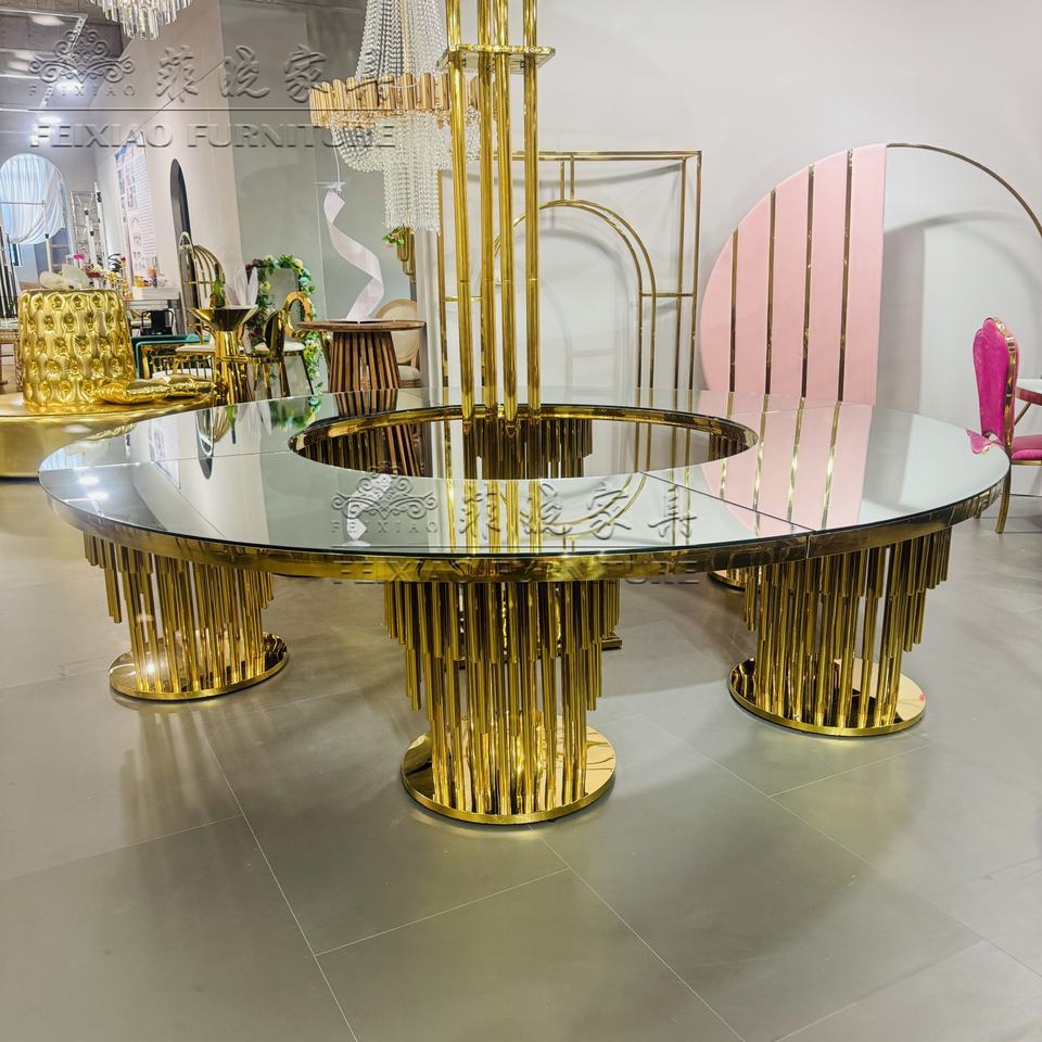 โต๊ะกระจกทรงกลมขนาดใหญ่สำหรับงานแต่งงานโต๊ะรับประทานอาหารในงานแต่งงานทำจากสแตนเลสดีไซน์ใหม่