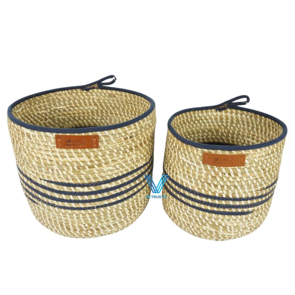 ชุดตะกร้าเก็บของดีไซน์ใหม่ ตะกร้าเย็บแบบซิกแซก ทำจากหญ้าทะเลผสมผ้าฝ้าย สำหรับจัดระเบียบของใช้ในบ้าน ซักผ้า และห้องน้ำ