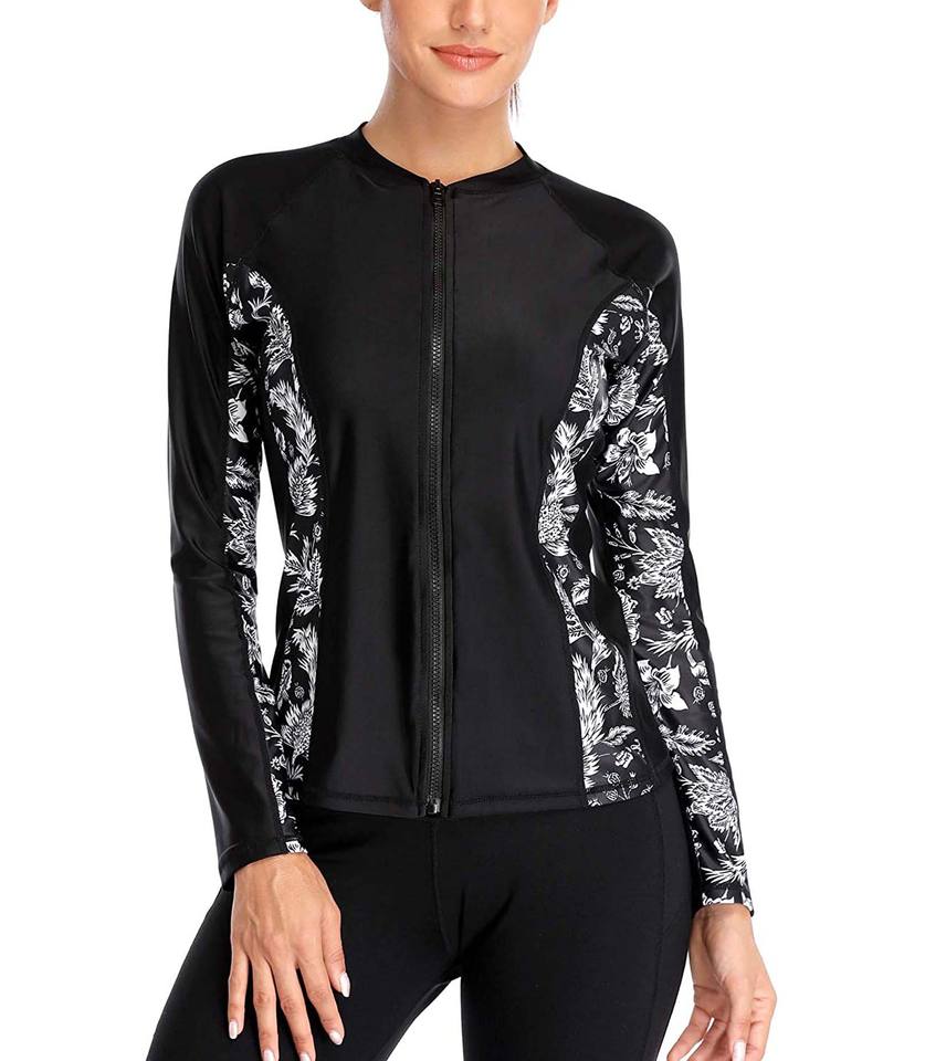 เสื้อแขนยาวแบบมีซิปสำหรับผู้หญิง,เสื้อว่ายน้ำเสื้อกีฬาแขนยาวแบบระเหิดพิมพ์ลาย