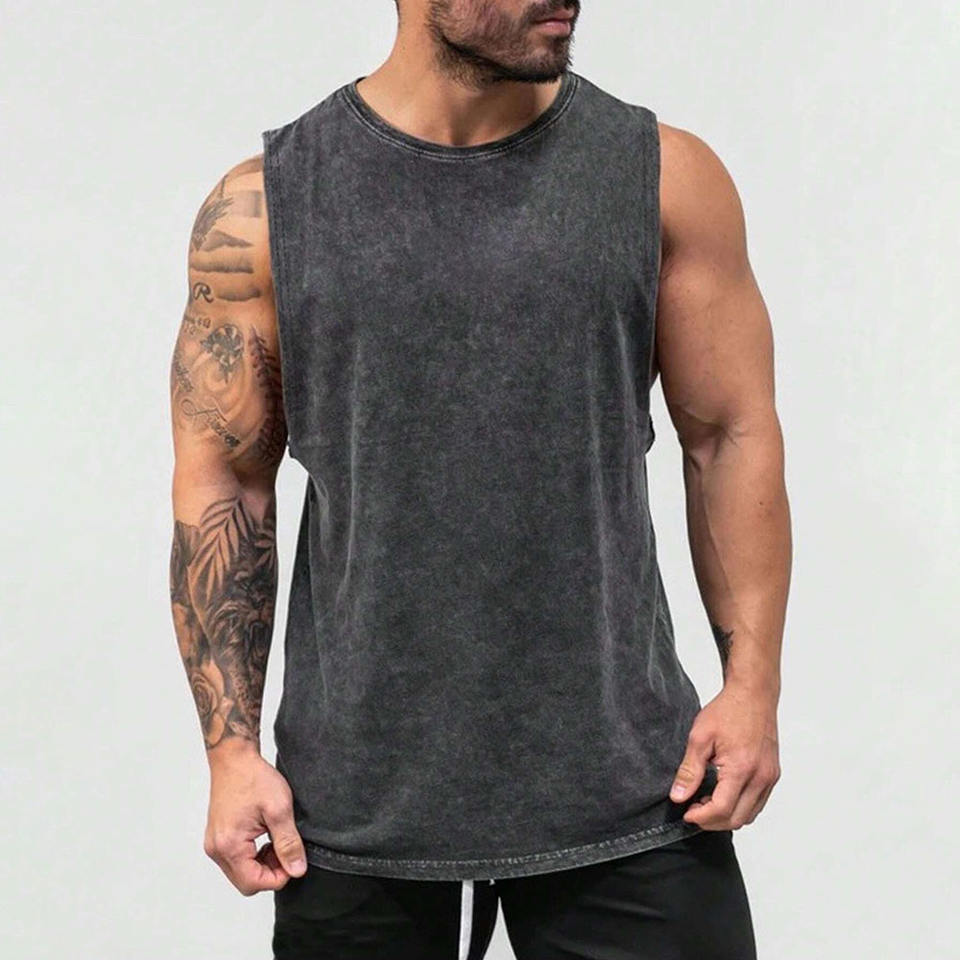 เสื้อกล้ามผู้ชายผ้าฝ้าย100% ใหม่เสื้อโอเวอร์ไซส์แบบย้อนยุคเสื้อเชิ้ตแขนกุดสำหรับใส่ไปยิม