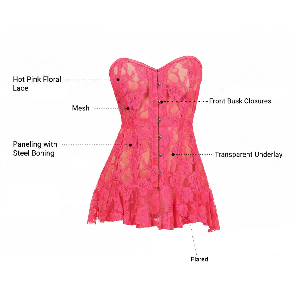 ชุดเดรสซีทรูตาข่ายเสริมโครงเหล็กอย่างดี คอร์เซ็ทลูกไม้ลายดอกไม้สีชมพู ดีไซน์ใหม่ คอเสื้อแบบ Sweetheart