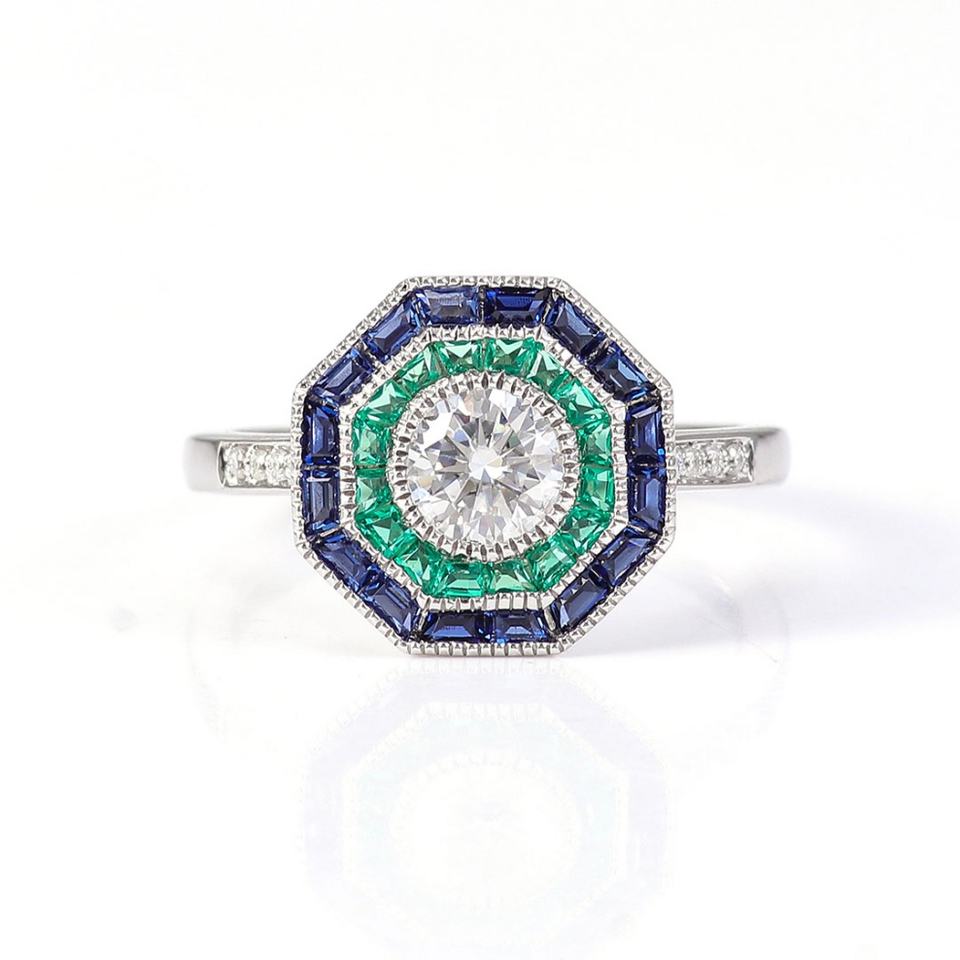 แหวนเพชรทรงบาแกตต์สีน้ำเงินอมเขียวแบบใหม่ ดีไซน์เรียวแหลม ผลิตจากเพชรเลี้ยงในห้องปฏิบัติการ พร้อมทองคำขาว 18K 14K 10K เครื่องประดับแฟชั่น แหวนออนไลน์ ร้านแหวน