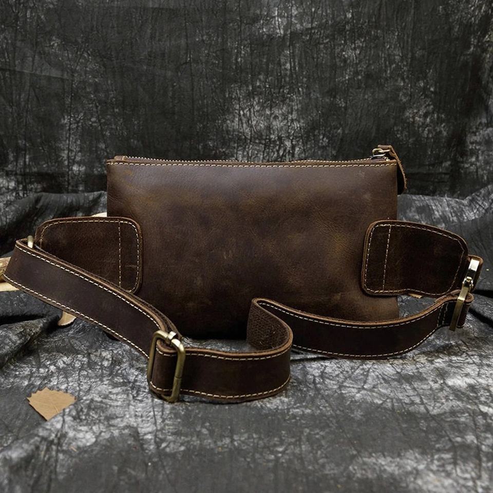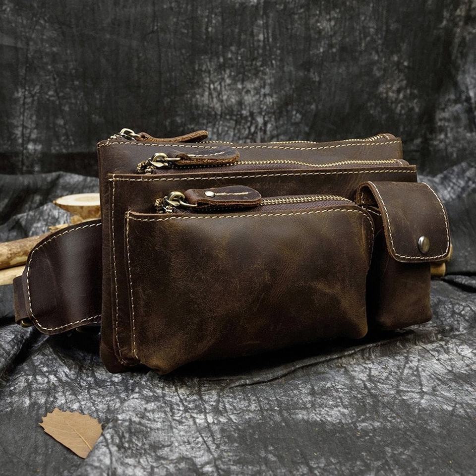 กระเป๋าคาดเอวหนังแนววินเทจสำหรับเดินทางกระเป๋าเดินกลางแจ้งกระเป๋าคาดเอวแบบพกพากระเป๋าคาดเอวหนัง Crazy Horse ดีไซน์ใหม่