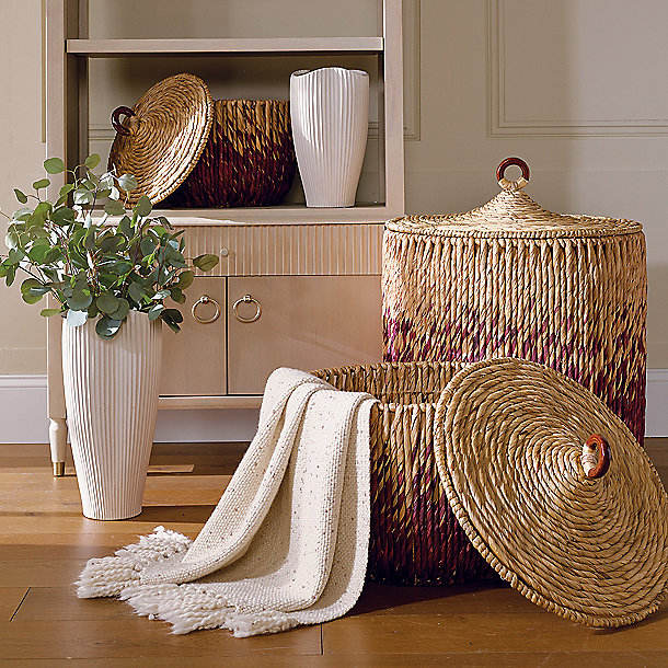 ตะกร้าใส่ของผักตบชวาพร้อมฝาปิดดีไซน์ใหม่เป็นมิตรต่อสิ่งแวดล้อม