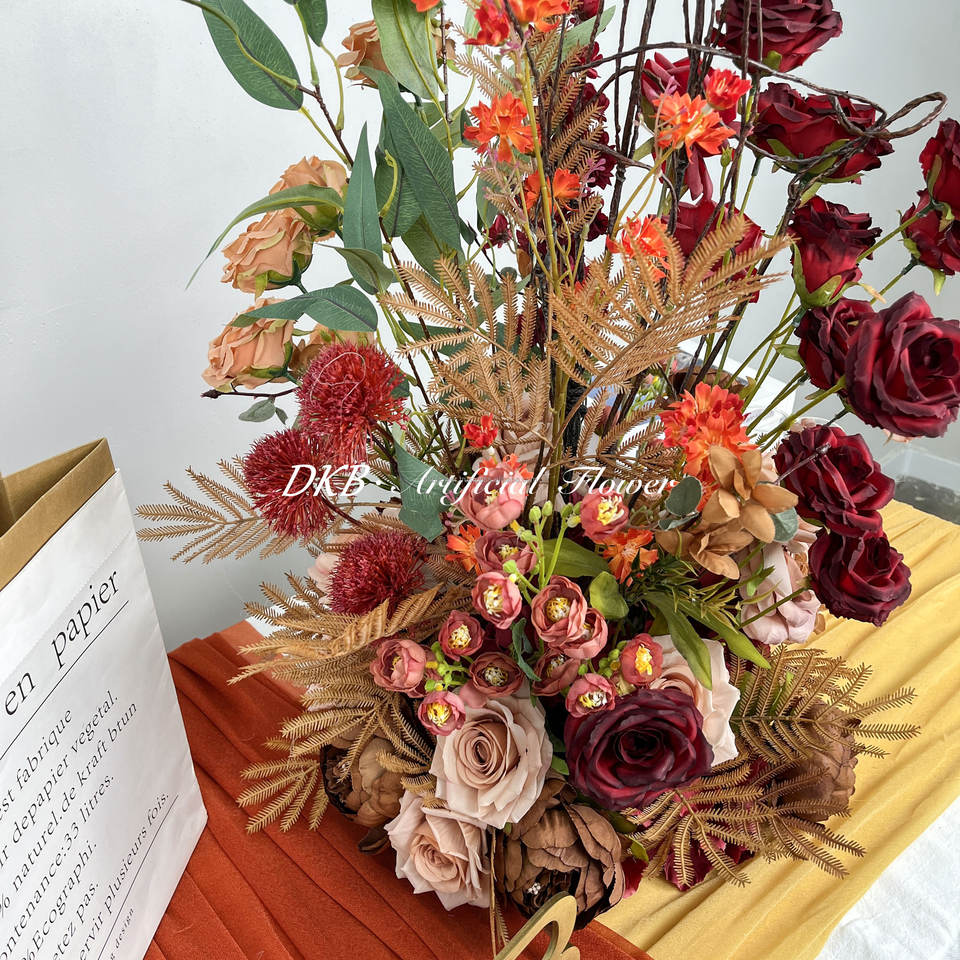 การตกแต่งดอกไม้ประดิษฐ์กลางโต๊ะงานแต่งงานดีไซน์ใหม่การตกแต่งดอกไม้ประดิษฐ์งานแต่งงานแบบวินเทจ
