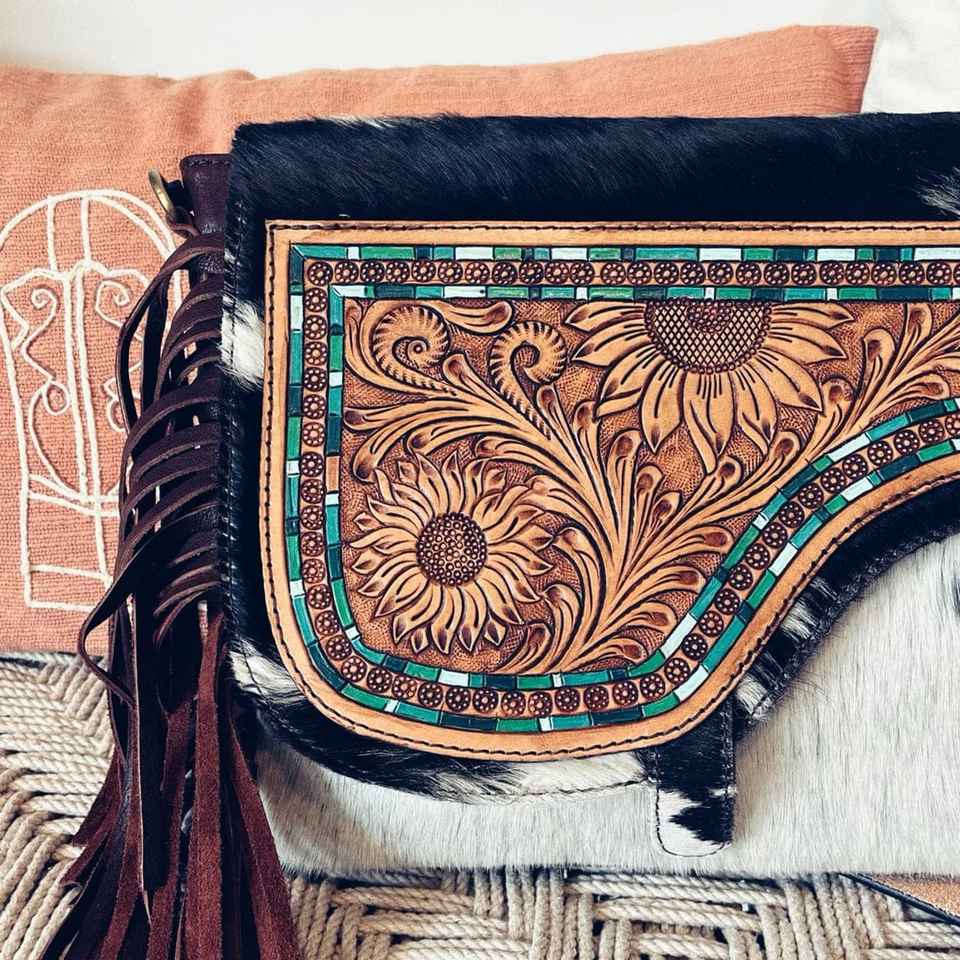 กระเป๋าหนังแท้สไตล์โบฮีเมียนแบบใหม่สำหรับผู้หญิง ตกแต่งพู่ห้อยลายดอกไม้ แกะสลักด้วยมือ หนังแท้ สีสั่งทำได้ ราคาดีที่สุดสำหรับฤดูใบไม้ร่วง