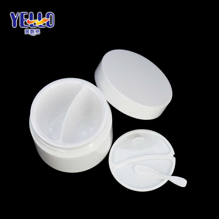 กระปุกครีมพลาสติก PP สีขาวแบบสองช่อง ดีไซน์ใหม่ สำหรับบรรจุบัตเตอร์บำรุงผิวหน้าและรอบดวงตา