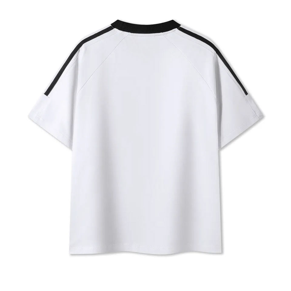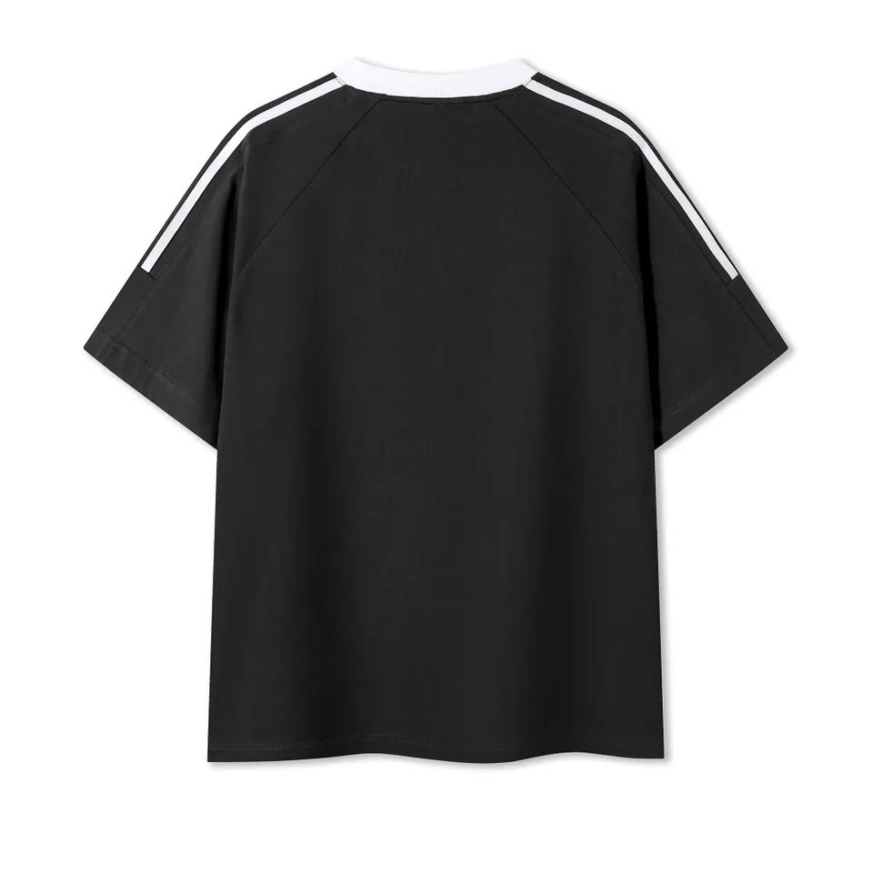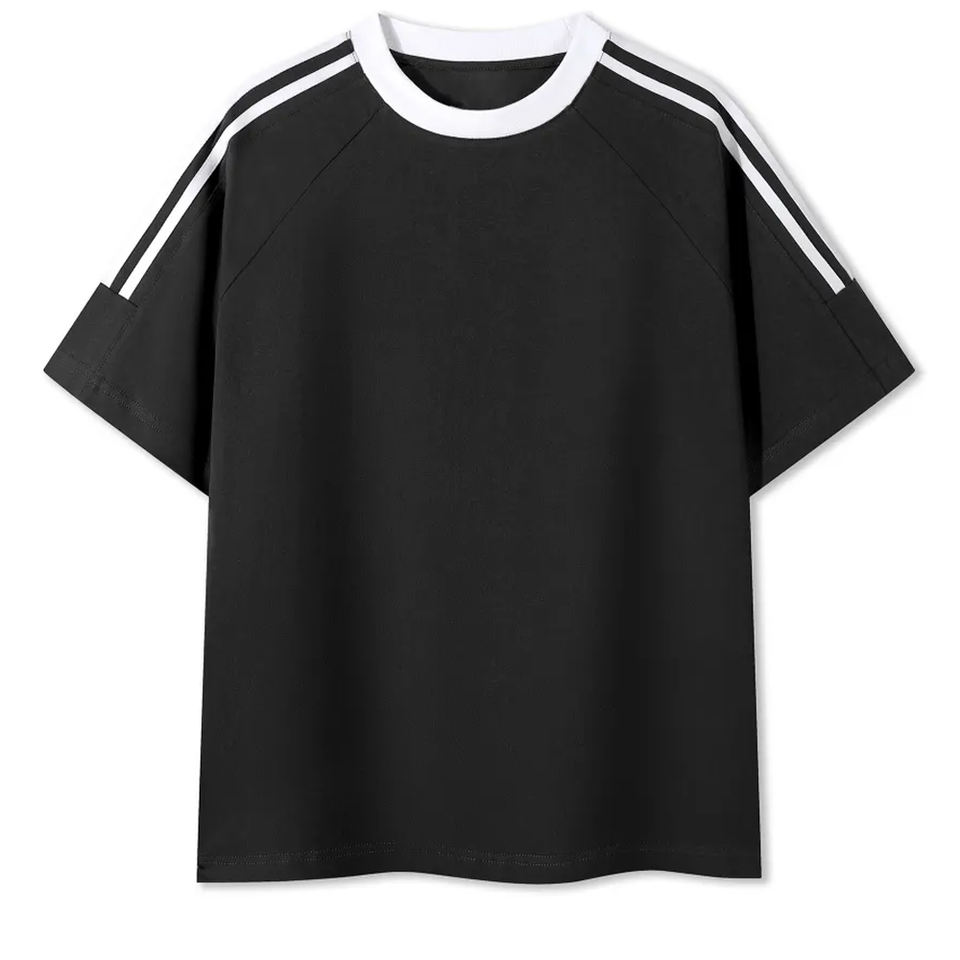 เสื้อยืดคอกลมลายทาง ดีไซน์ใหม่ ขายส่ง ผลิตตามสั่ง ผ้าฝ้าย 100% 240GSM แต่งแถบสีตัดกัน ทรงโอเวอร์ไซส์ ไหล่ตก