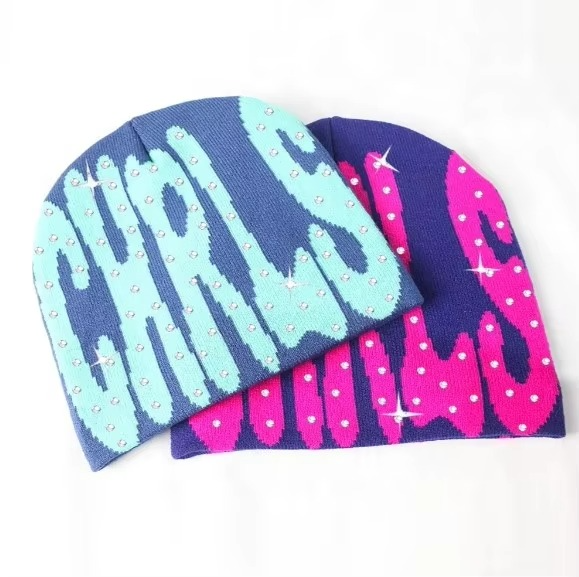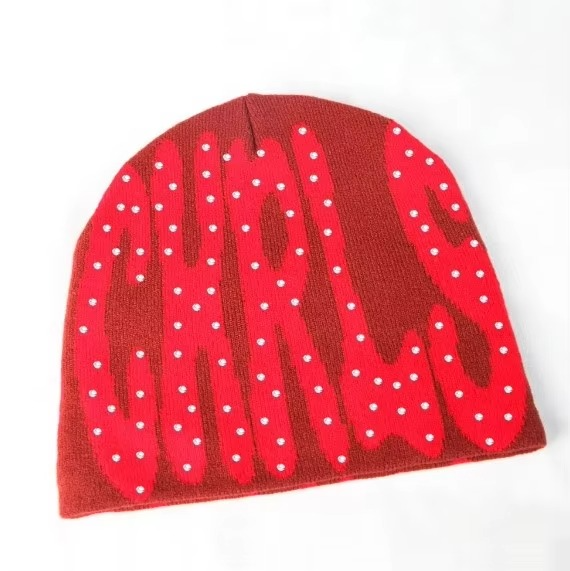 หมวกถักนิตติ้งแบบกำหนดเองหมวกบีนนี่พลอยเทียมหมวกบีนนี่ผ้าขนแกะมีโลโก้ออกแบบได้ตามต้องการ