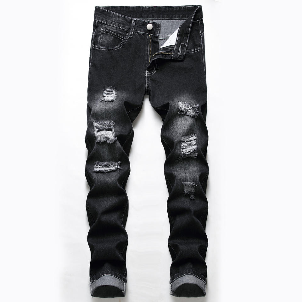 New Design Wholesale Man Jeans Denim Pants Street Guys Wear Fashion Cool Black Knee Patch Man Jeans