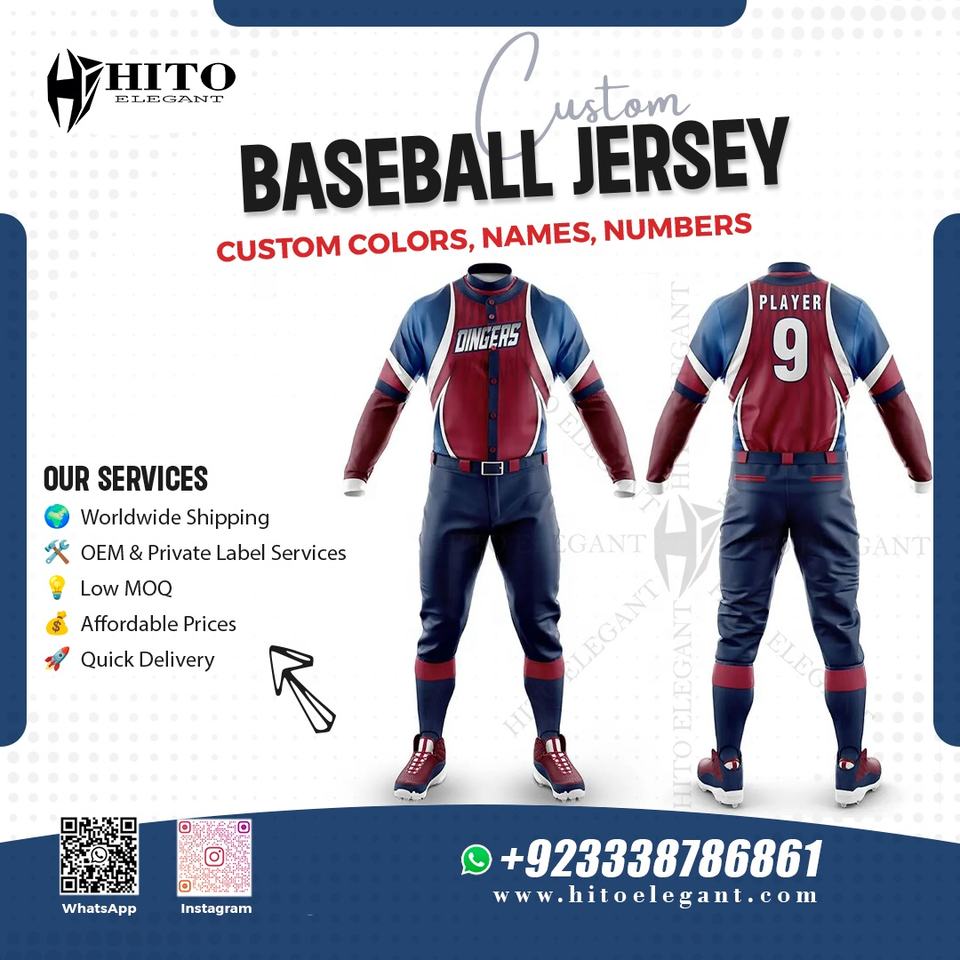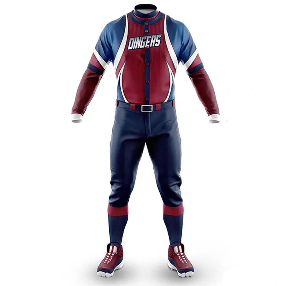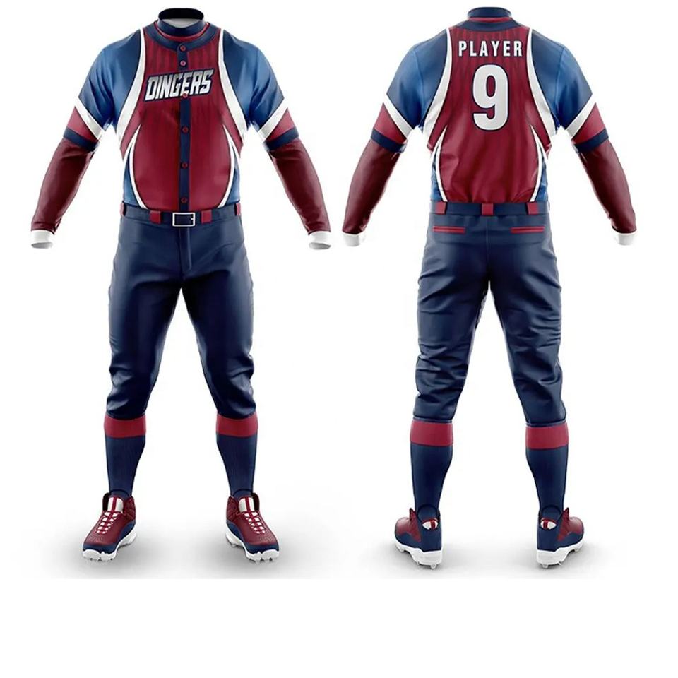 ชุดเครื่องแบบเบสบอลแบบเต็มชุดสีแบบทีมชุดเสื้อเบสบอลแบบกำหนดชื่อทีมได้เองดีไซน์ใหม่