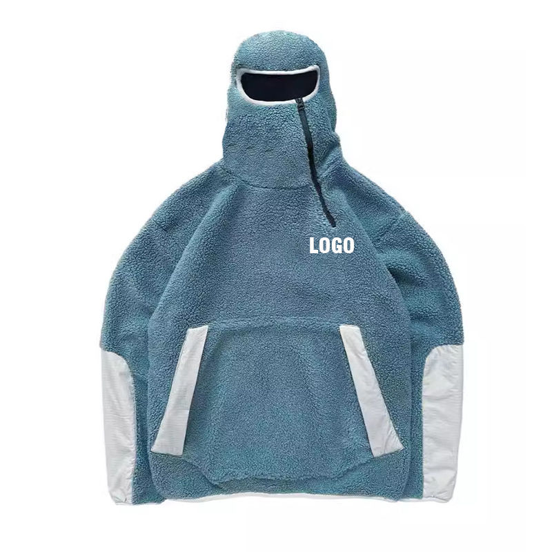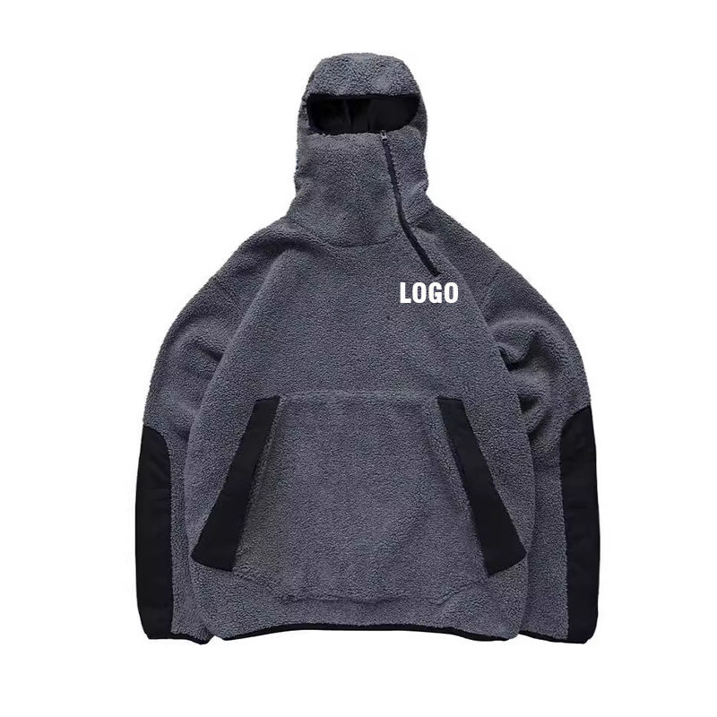 เสื้อฮู้ดดี้เชอร์ปาแบบมีซิปครึ่งตัว ดีไซน์ใหม่สำหรับฤดูหนาว สไตล์สตรีทแวร์ ปกปิดใบหน้า ให้ความอบอุ่น แฟชั่นสำหรับผู้ชาย