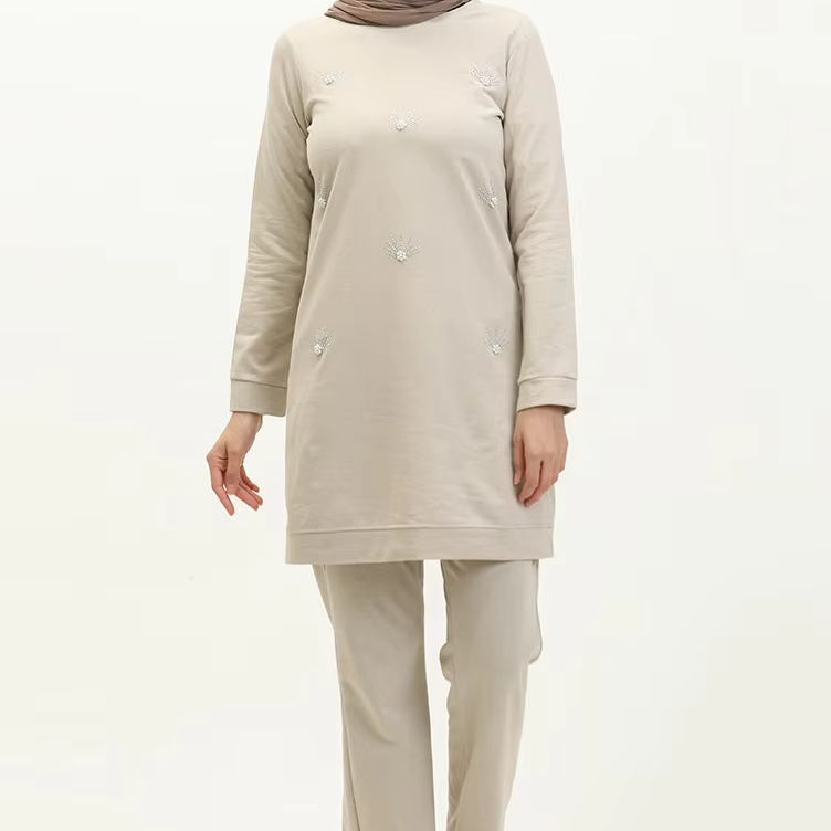 ชุดกีฬาอิสลามแบบมีฮู้ด ดีไซน์ใหม่ ลายปักสำหรับฤดูหนาว สไตล์สปอร์ตแบบดั้งเดิมสำหรับสตรีชาวมุสลิม ชุดเดรสยาวแบบอบายะ
