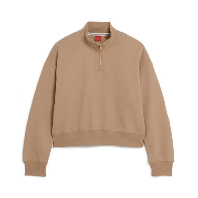 เสื้อสเวตเชิ้ตผู้หญิงคอปกแบบซิปครึ่งตัว ดีไซน์ใหม่สำหรับฤดูหนาว ถักนิตติ้ง ทรงหลวมไหล่ตก ไซส์ปกติ คุณภาพสูง เป็นมิตรต่อสิ่งแวดล้อม