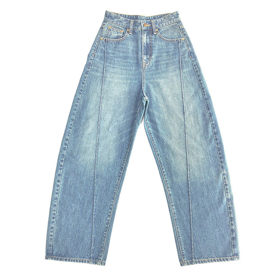 กางเกงยีนส์ผู้หญิงดีไซน์ใหม่สไตล์ย้อนยุควินเทจสีฟ้าระบายอากาศกางเกงผ้าสวมใส่สบายสำหรับเสื้อผ้าฤดูใบไม้ผลิทุกวัน