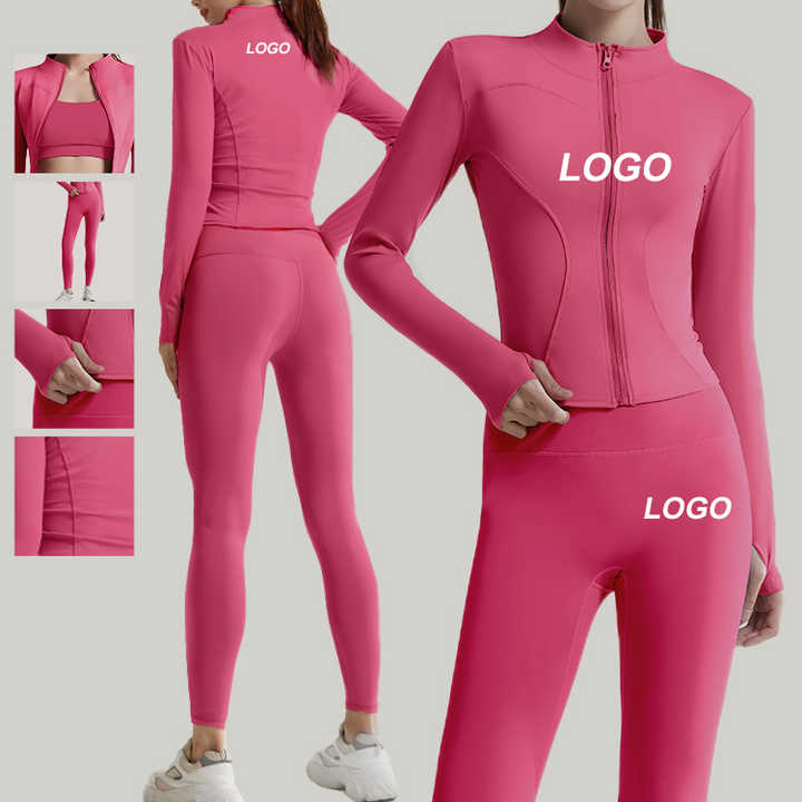 ชุดเล่นโยคะสำหรับผู้หญิง2ชิ้นชุดออกกำลังกายแจ็กเก็ตออกกำลังกายเข้ารูปดีไซน์ใหม่