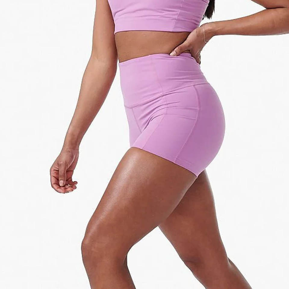 กางเกงขาสั้นรัดเอวสูงของผู้หญิงกางเกงขาสั้นสำหรับเล่นโยคะออกกำลังกายในยิมดีไซน์ใหม่