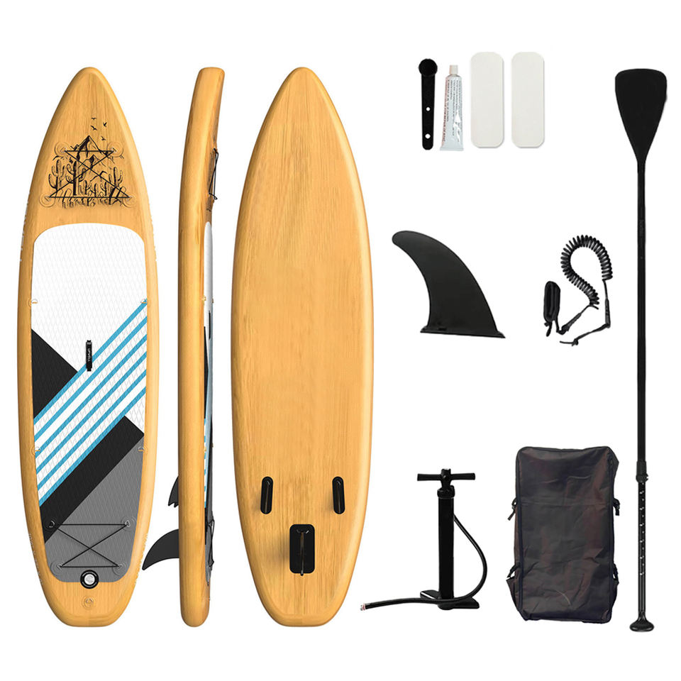 กระดานพายลมพีวีซีลายไม้ดีไซน์ใหม่ ชุดกระดานโต้คลื่นแบบยืนพาย ปรับแต่งได้ เป็นมิตรกับสิ่งแวดล้อม พกพาสะดวก ครีบเดี่ยว ใช้ได้ทั้งชายและหญิง สำหรับทะเล