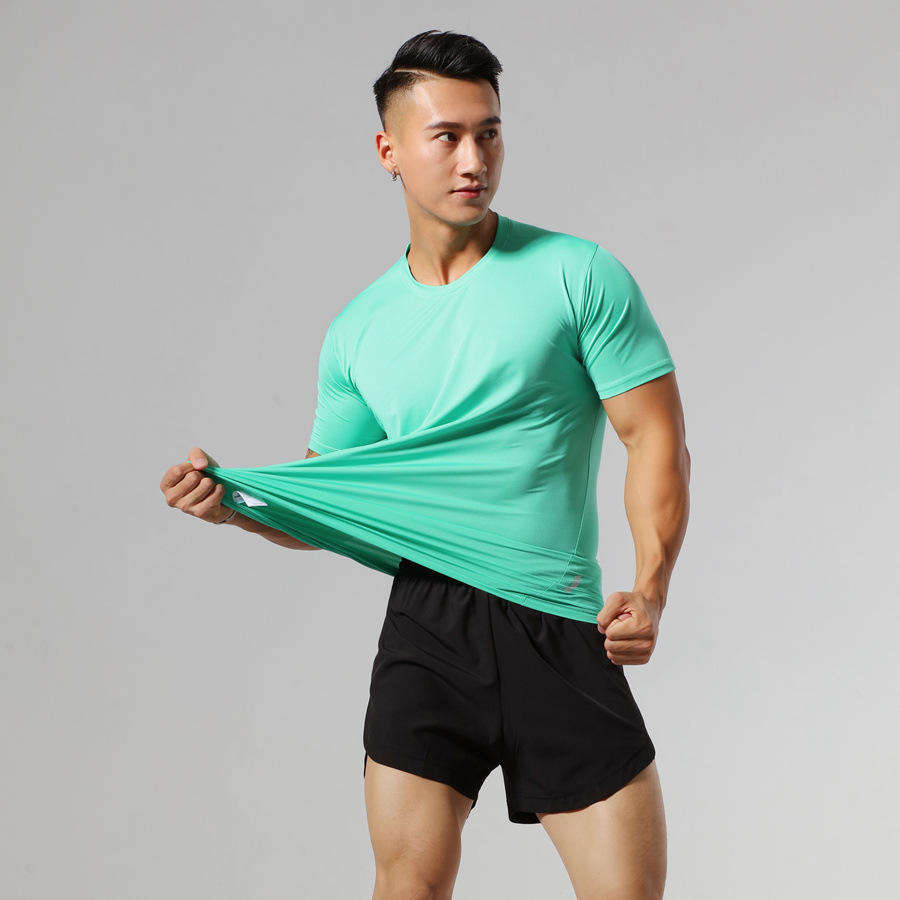 เสื้อยืดออกกำลังกายดีไซน์ใหม่ ผ้าสเตรช ระบายอากาศได้ดี แห้งเร็ว เหมาะสำหรับวิ่งและเล่นกีฬา ผู้ชาย ฤดูร้อน