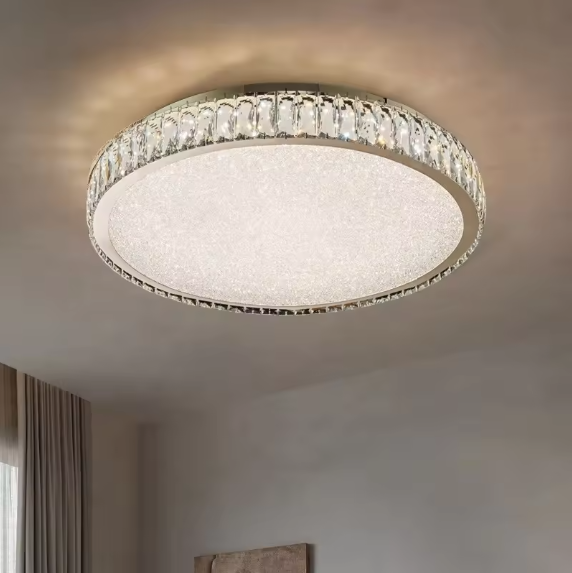โคมไฟคริสตัลติดพื้นผิวโคมไฟ LED เพดานกลมสำหรับห้องนอนห้องนั่งเล่นแบบเรียบง่าย