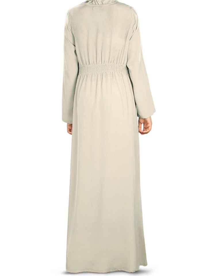 ชุดเดรสมุสลิมสไตล์เรียบง่ายแขนยาวสำหรับผู้หญิงชุดเดรสสไตล์เรียบง่ายสีพื้นแบบดั้งเดิมดีไซน์ใหม่สำหรับ Aschulman