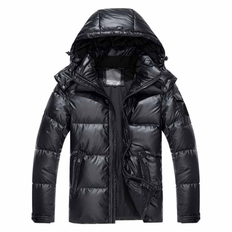 แจ็คเก็ตพัฟเฟอร์มีฮู้ดสำหรับผู้ชาย ดีไซน์ใหม่ โลโก้สั่งทำได้ ไซส์ใหญ่ สีพื้นเงา ผ้าไนลอน อุ่นสบาย สไตล์ลำลอง