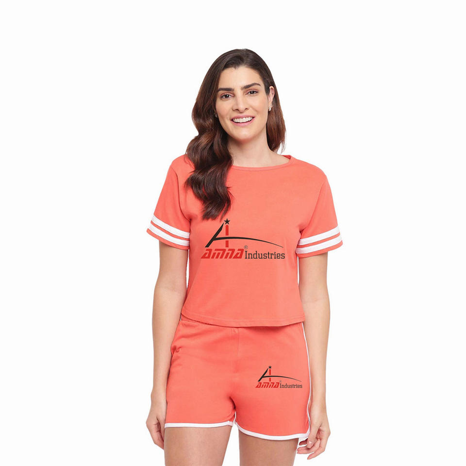 ออกแบบใหม่สุภาพสตรีฤดูร้อนชุดมาถึงกลางแจ้งนอนเสื้อยืดกางเกงขาสั้นชุดในราคาขายส่ง