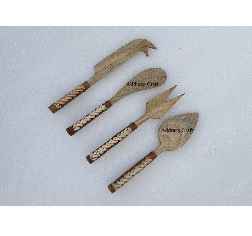 ชุดช้อนส้อมมีด้ามจับแบบหวายดีไซน์ใหม่ออกแบบโลโก้ได้ตามที่ต้องการชุดมีดหั่นชีสเนยมีดหั่นชีส