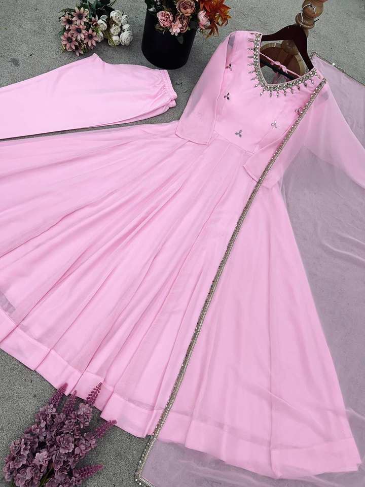 ชุดเดรส Anarkali ดีไซน์ใหม่ งานปัก Hot Fix ผ้าจอร์เจตต์ งานกระจกแท้และขอบลูกไม้ พร้อมกางเกงและผ้าคลุมไหล่ ตัดเย็บสำเร็จ พร้อมสวมใส่